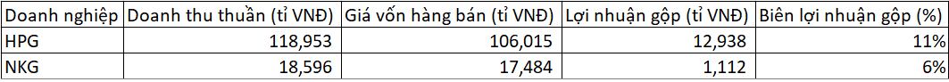 - Như vậy, trong cùng bối cảnh, lợi nhuận của NKG mang tính đột biến nhiều hơn so với HPG, thông thường sẽ dẫn đến giá cổ phiếu tăng mạnh hơn trong uptrend của cổ phiếu.
