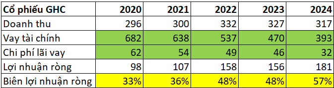 Với doanh nghiệp sản xuất, ban đầu công ty phải vay tiền đầu tư, dẫn đến chi phí lãi vay ban đầu cao. Nếu công ty mang lại lợi nhuận và trả phần gốc và lãi vay đều đặn, chi phí tài chính này sẽ giảm dần theo thời gian và làm tăng biên lợi nhuận ròng, ta có thể thấy rõ trong ví dụ cổ phiếu GHC (ngành sản xuất điện):